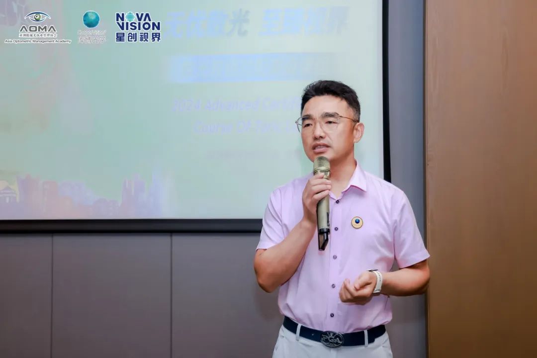 最后AOMA商务发展总监沈文佳女士上台介绍了本次课程组织方——亚洲眼视光执业管理协会(AOMA)的背景与愿景。本次课程经过AOMA的21位执业专家与医学专家共同评议,以"循证性、整体性、中立性和可操作性"为原则。为期两天的课程,将围绕理论知识、案例分析、实践操作、顾客沟通等多个版块进行培训分享,相信经过这2天的知识洗礼,学员们会大有所获。